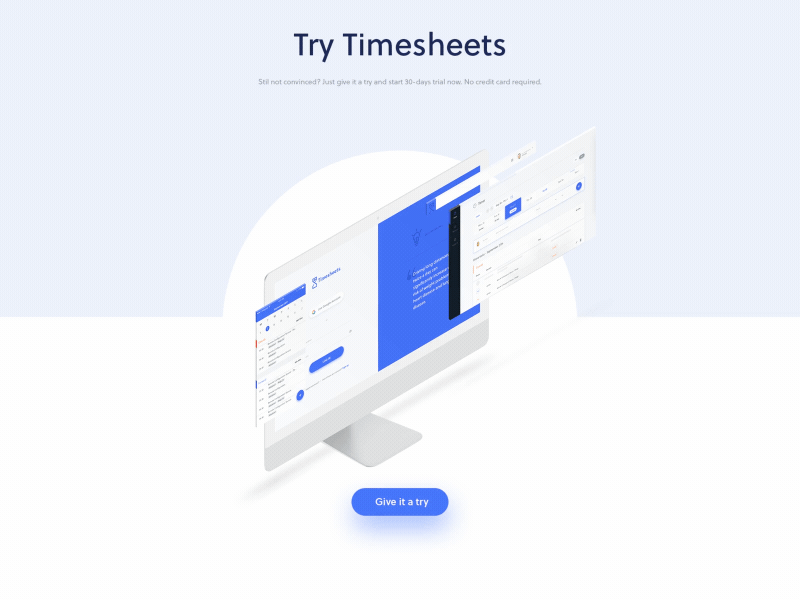 Check out the landingpage for Timesheets app - a tool that lets you track your tasks and generate reports for your clients. Don’t forget to check our rebound animations we did a while ago :)