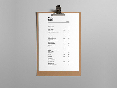 20. Wine List - Eighty Eight Restaurant 2020 bold clipboard menu design hospitality indesign layout layout design menu print print design printing restaurant typography wine wine list