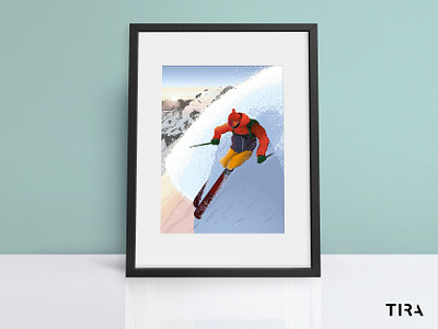 Bluebird day - Ski Illustration